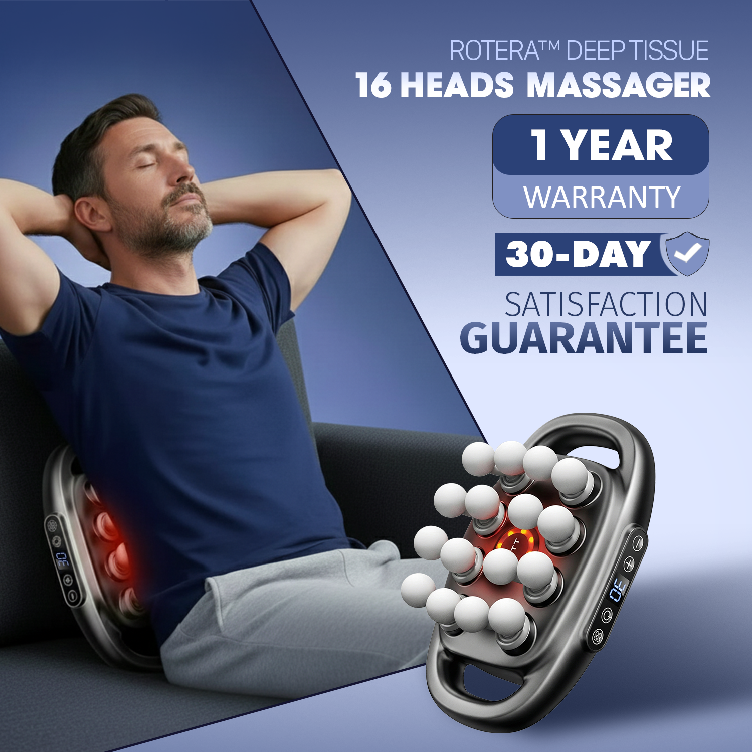 It uses 16 rotating massage heads + heat therapy to mimic a professional deep-tissue session- breaking up stubborn knots, boosting circulation, and relieving pressure on your spine in minutes.
